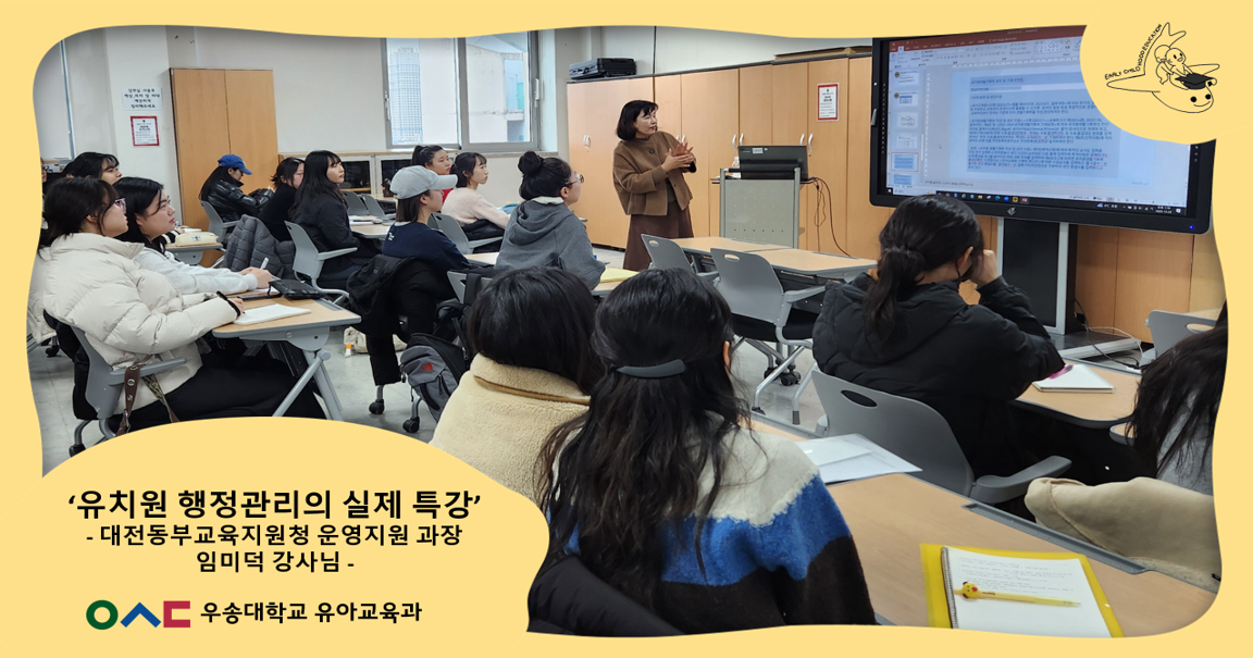 학생활동 지금유아교육과에서는! 학생들의 학과소개 글로벌프로그램 학생회 동아리 유아교육과 뉴스레터 생생 유아교육 지금유아교육과에서는!Home학생활동지금유아교육과에서는! 전체 비교과프로그램 교과수업 학술제 유치원 행정관리의 실제 특강_대전동부교육지원청 운영지원 과장 임미덕 강사님 카테고리 : [비교과프로그램]| 작성자 : 학과관리자 | 작성일 : 2025.12.29 | 조회수 : 9 첨부파일 유치원 행정관리의 실제 특강_썸네일.png 유치원 행정관리의 실제 특강1.png 유치원 행정관리의 실제 특강2.png 유치원 행정관리의 실제 특강3.png 유치원 행정관리의 실제 특강4.png 목록 이전글 대전유아교육진흥원 견학 다음글 응급처치 특강_윤라영 강사님
