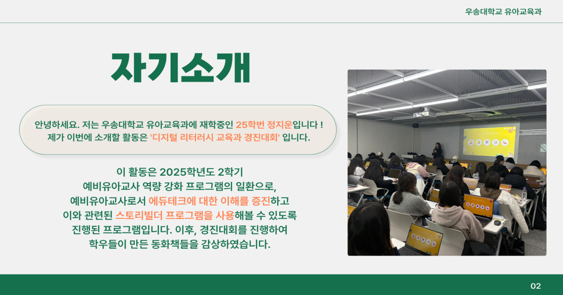 학생활동 지금유아교육과에서는! 학생들의 학과소개 글로벌프로그램 학생회 동아리 유아교육과 뉴스레터 생생 유아교육 학생들의 학과소개Home학생활동학생들의 학과소개 202511841 정지운(1학년) 작성자 : 학과관리자 | 작성일 : 2026.01.13 | 조회수 : 20 첨부파일 202511841 정지운_썸네일.png 202511841 정지운1.png 202511841 정지운2.png 202511841 정지운3.png 202511841 정지운4.png 목록 이전글 202211617 이연화(4학년) 다음글 202411591 박채빈(2학년)