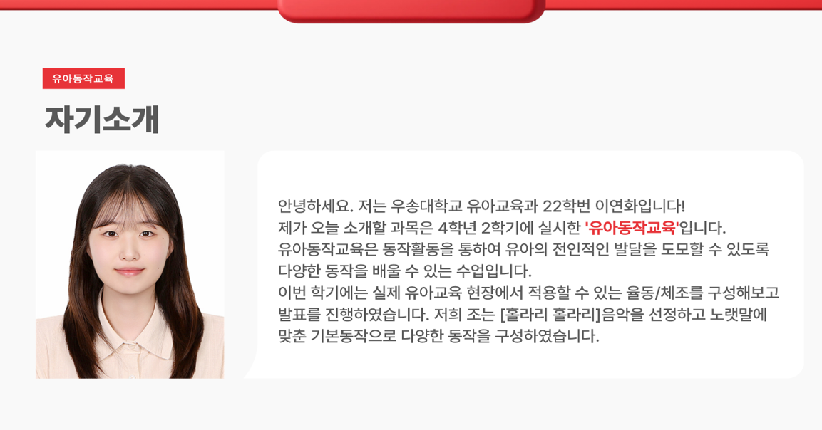 학생활동 지금유아교육과에서는! 학생들의 학과소개 글로벌프로그램 학생회 동아리 유아교육과 뉴스레터 생생 유아교육 학생들의 학과소개Home학생활동학생들의 학과소개 202211617 이연화(4학년) 작성자 : 학과관리자 | 작성일 : 2026.01.13 | 조회수 : 19 첨부파일 202211617 이연화_썸네일.png 202211617 이연화1.png 202211617 이연화2.png 202211617 이연화3.png 202211617 이연화4.png 목록 이전글 202411596 송시현(2학년) 다음글 202511841 정지운(1학년)