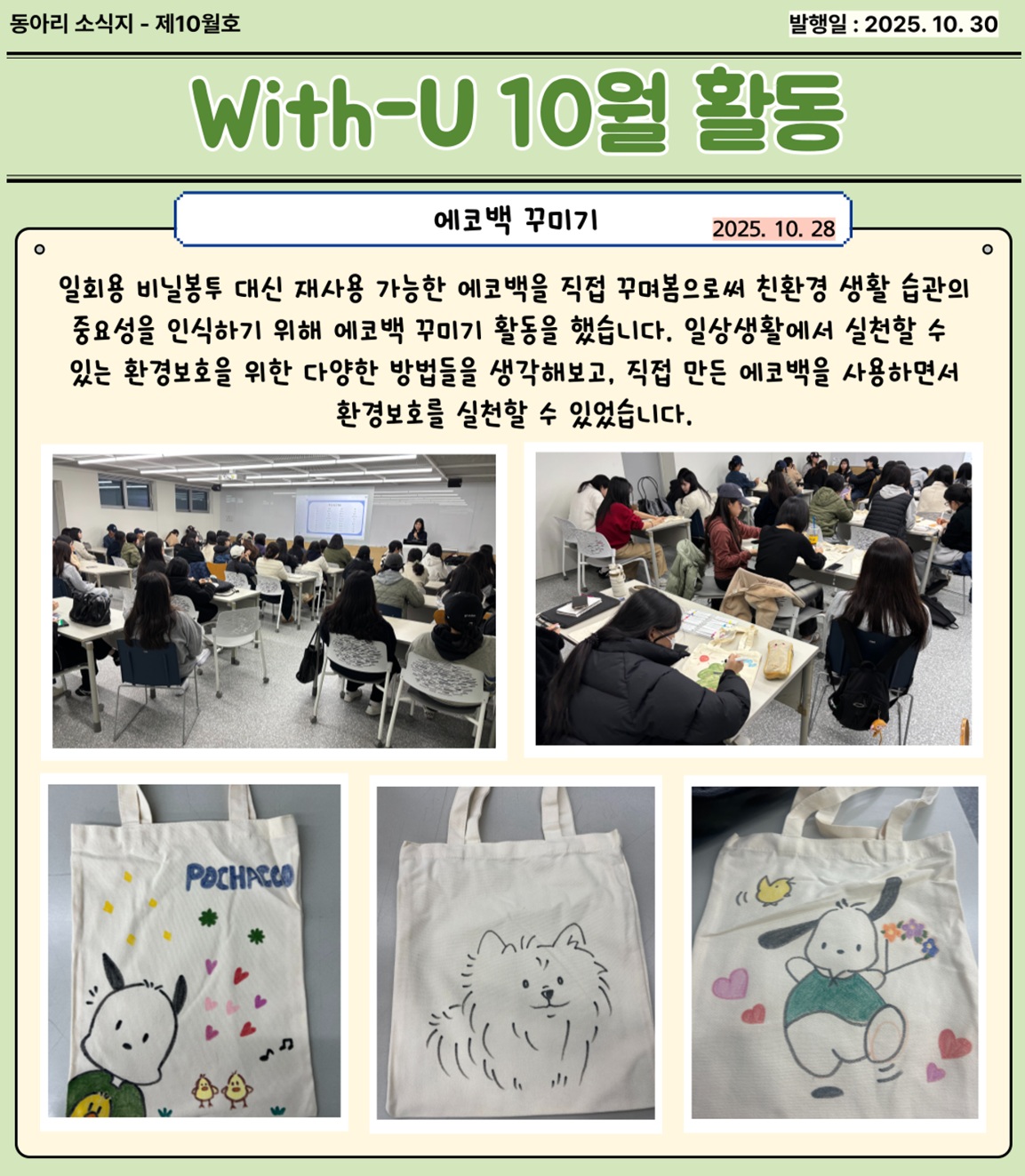 학생활동 지금유아교육과에서는! 학생들의 학과소개 글로벌프로그램 학생회 동아리 유아교육과 뉴스레터 생생 유아교육 동아리Home학생활동동아리 Edu-Play Edu-Art With-U With-U예비 유아교사로서 유아와 관련된 최근의 글로벌 이슈와 사회적 이슈에 관심을 가지고, 관련 캠페인 활동에 참여하는 동아리입니다. 10월호 소식지 작성자 : 학과관리자 | 작성일 : 2025.10.31 | 조회수 : 21 첨부파일 [15]위드유_썸네일.png [24]위드유1.png [15]위드유2.png 목록