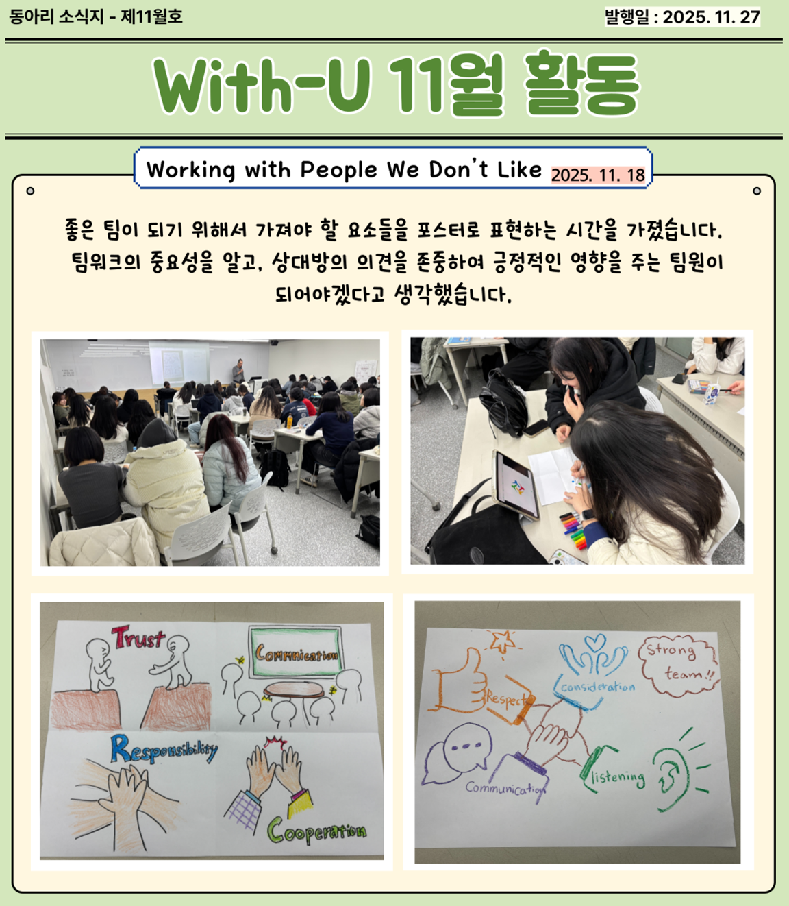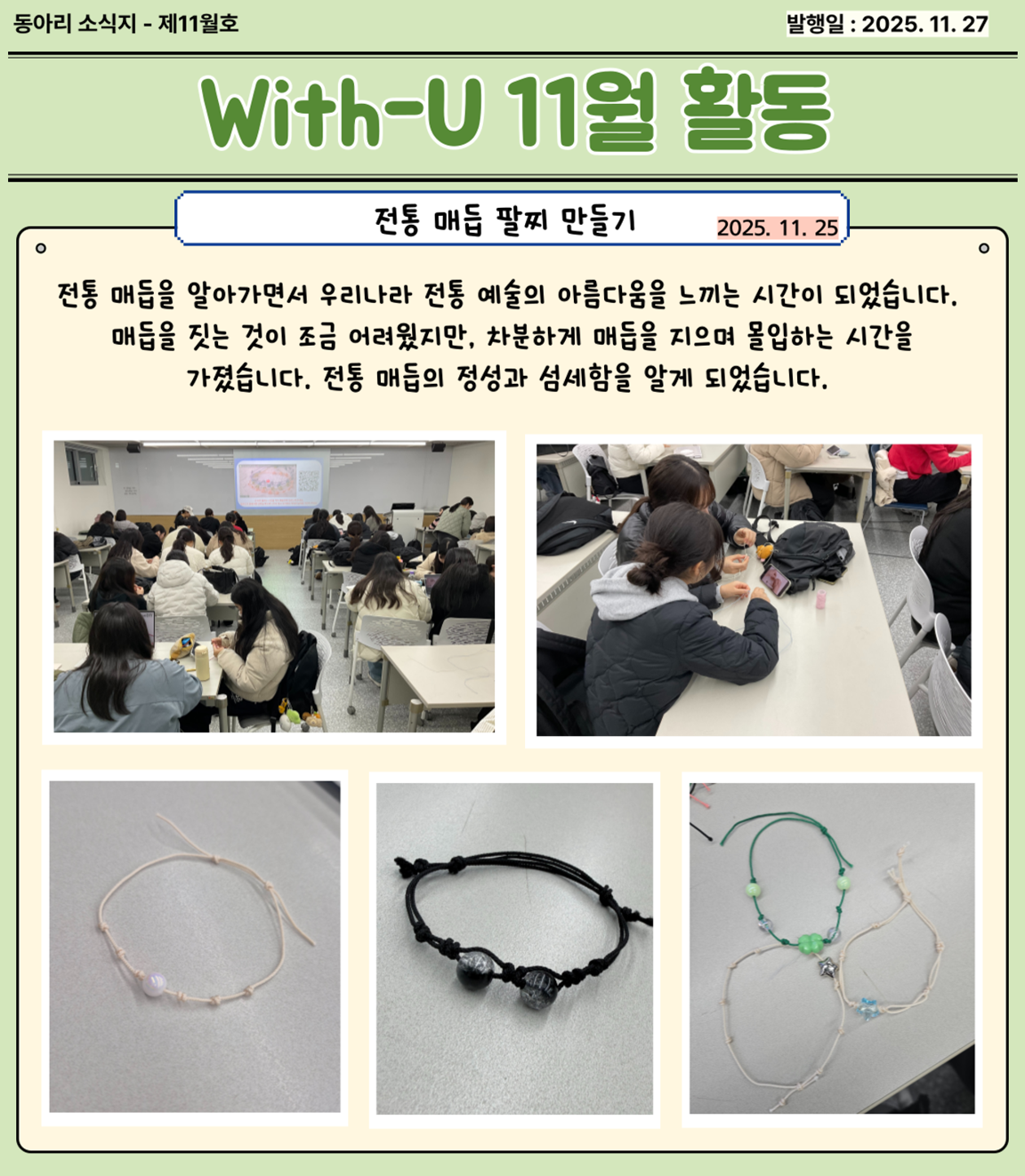 학생활동 지금유아교육과에서는! 학생들의 학과소개 글로벌프로그램 학생회 동아리 유아교육과 뉴스레터 생생 유아교육 동아리Home학생활동동아리 Edu-Play Edu-Art With-U With-U예비 유아교사로서 유아와 관련된 최근의 글로벌 이슈와 사회적 이슈에 관심을 가지고, 관련 캠페인 활동에 참여하는 동아리입니다. 11월호 소식지 작성자 : 학과관리자 | 작성일 : 2025.11.28 | 조회수 : 39 첨부파일 [16]위드유_썸네일.png [26]위드유1.png [16]위드유2.png [8]위드유3.png 목록