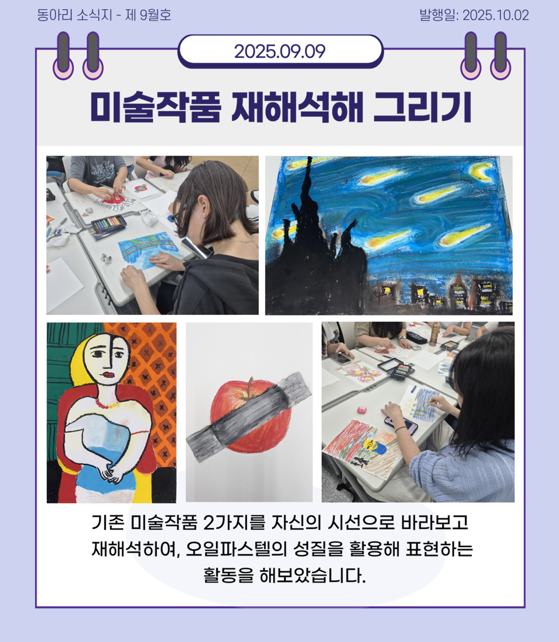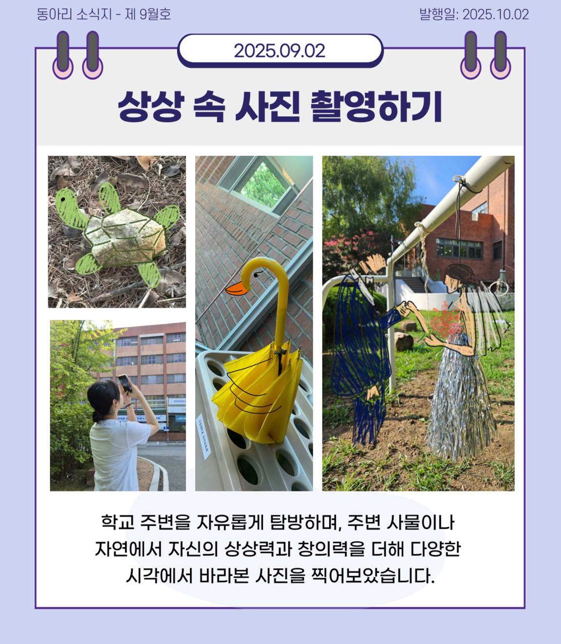 학생활동 지금유아교육과에서는! 학생들의 학과소개 글로벌프로그램 학생회 동아리 유아교육과 뉴스레터 생생 유아교육 동아리Home학생활동동아리 Edu-Play Edu-Art With-U Edu-Art미술, 음악, 동작 등 예술에 대한 이해와 경험을 바탕으로 예비유아교사로서 미적 소양을 함양시키기 위한 동아리입니다. 9월호 소식지 작성자 : 학과관리자 | 작성일 : 2025.10.10 | 조회수 : 47 첨부파일 [12]에듀아트_썸네일.png [23]에듀아트1.png [15]에듀아트2.png [7]에듀아트3.png [8]에듀아트4.png [2]에듀아트5.png [1]에듀아트6.png 목록
