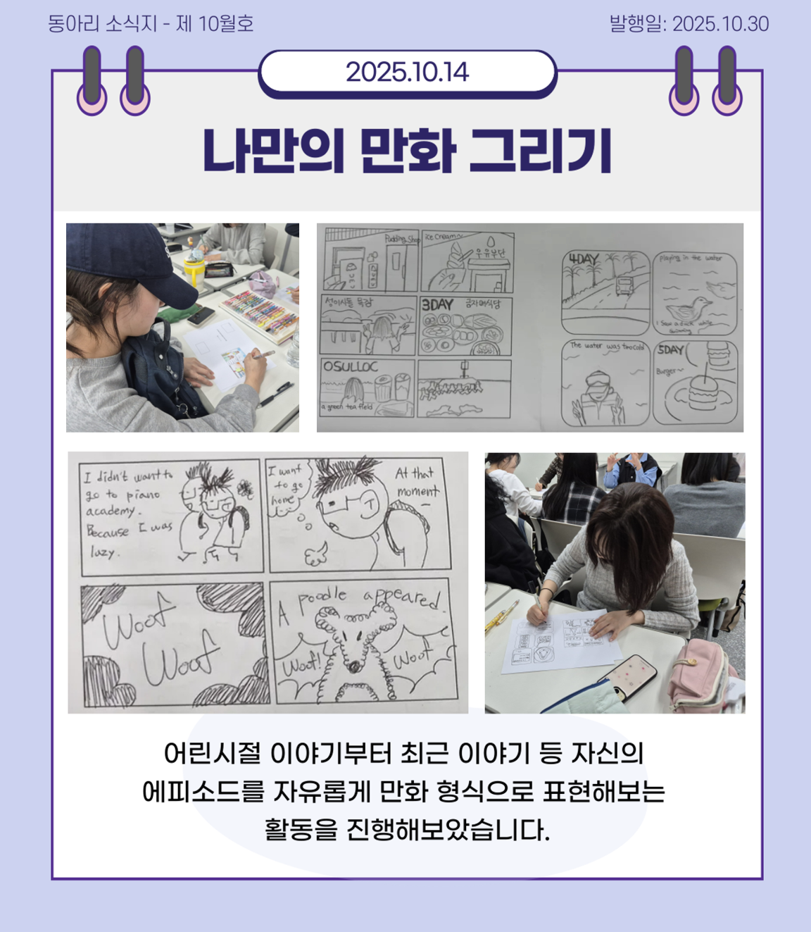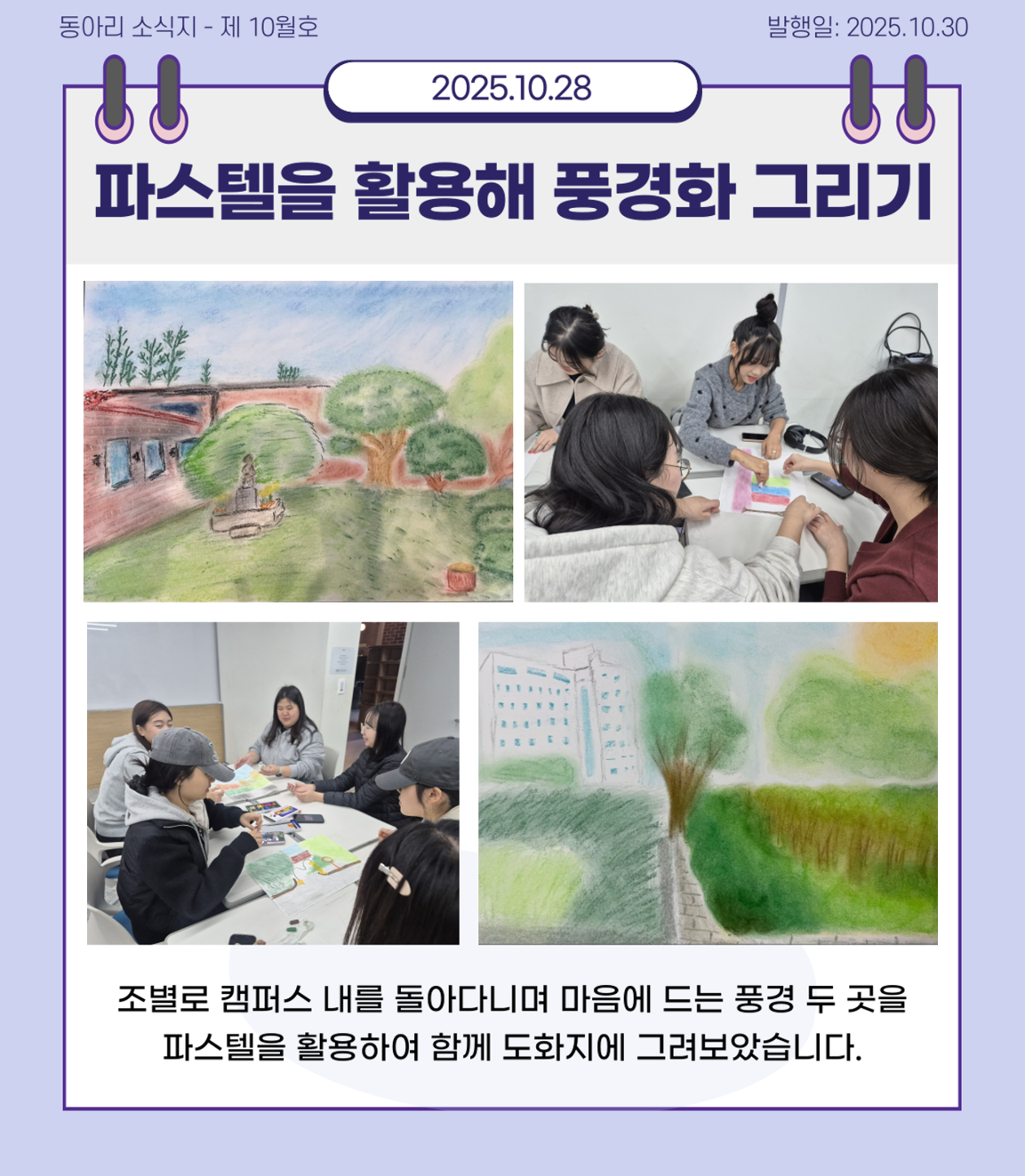 학생활동 지금유아교육과에서는! 학생들의 학과소개 글로벌프로그램 학생회 동아리 유아교육과 뉴스레터 생생 유아교육 동아리Home학생활동동아리 Edu-Play Edu-Art With-U Edu-Art미술, 음악, 동작 등 예술에 대한 이해와 경험을 바탕으로 예비유아교사로서 미적 소양을 함양시키기 위한 동아리입니다. 10월호 소식지 작성자 : 학과관리자 | 작성일 : 2025.10.31 | 조회수 : 29 첨부파일 [13]에듀아트_썸네일.png [28]에듀아트1.png [16]에듀아트2.png 목록