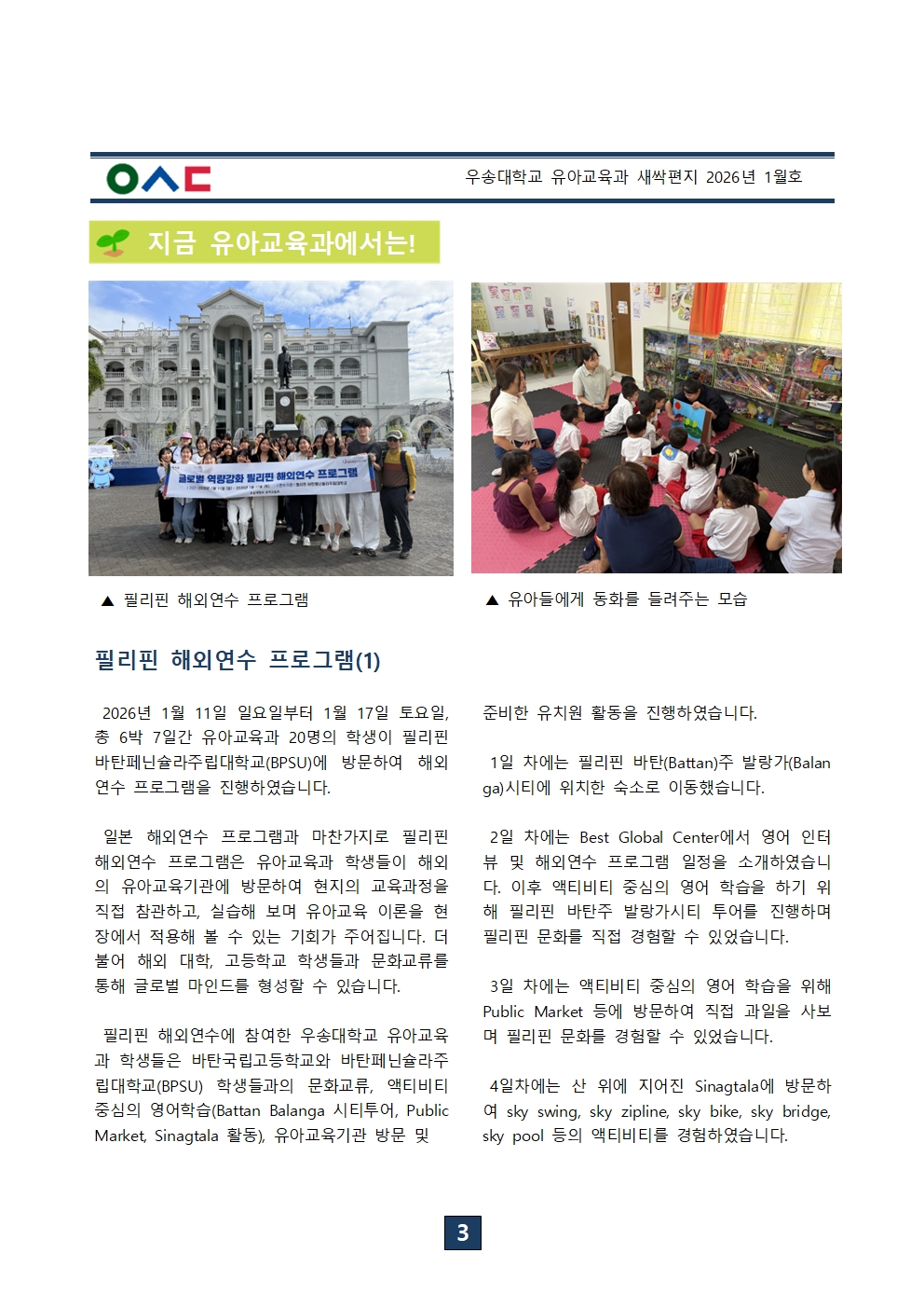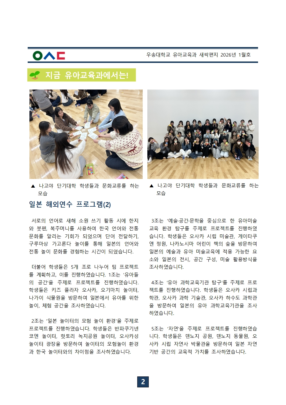 학생활동 지금유아교육과에서는! 학생들의 학과소개 글로벌프로그램 학생회 동아리 유아교육과 뉴스레터 생생 유아교육 유아교육 뉴스레터Home학생활동유아교육 뉴스레터 2026년도 새싹편지 1월호 작성자 : 학과관리자 | 작성일 : 2026.02.12 | 조회수 : 67 첨부파일 2026년도 새싹편지 1월호 001.jpg 2026년도 새싹편지 1월호 002.jpg 2026년도 새싹편지 1월호 003.jpg 2026년도 새싹편지 1월호 004.jpg 목록 이전글 2026년도 새싹편지 2월호 다음글 2025년도 새싹편지 12월호