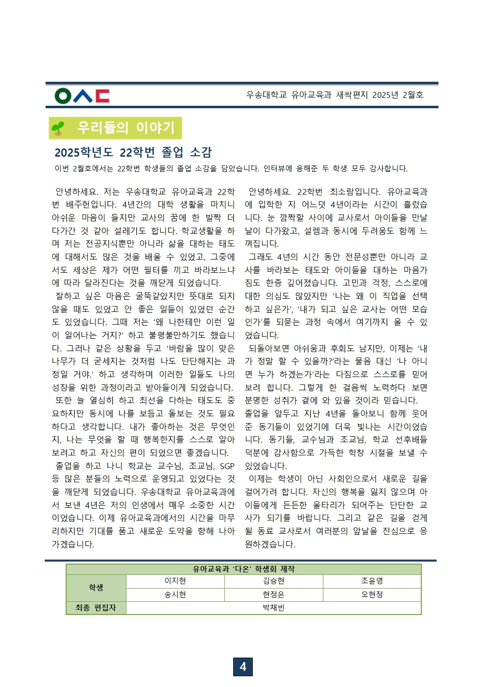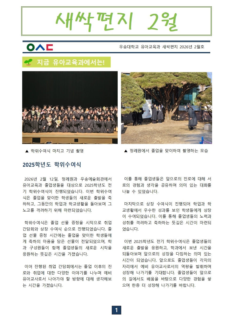 학생활동 지금유아교육과에서는! 학생들의 학과소개 글로벌프로그램 학생회 동아리 유아교육과 뉴스레터 생생 유아교육 유아교육 뉴스레터Home학생활동유아교육 뉴스레터 2026년도 새싹편지 2월호 작성자 : 학과관리자 | 작성일 : 2026.03.16 | 조회수 : 30 첨부파일 2026년도 새싹편지 2월호001.jpg 2026년도 새싹편지 2월호002.jpg 2026년도 새싹편지 2월호003.jpg 2026년도 새싹편지 2월호004.jpg 목록 이전글 이전 글이 없습니다. 다음글 2026년도 새싹편지 1월호